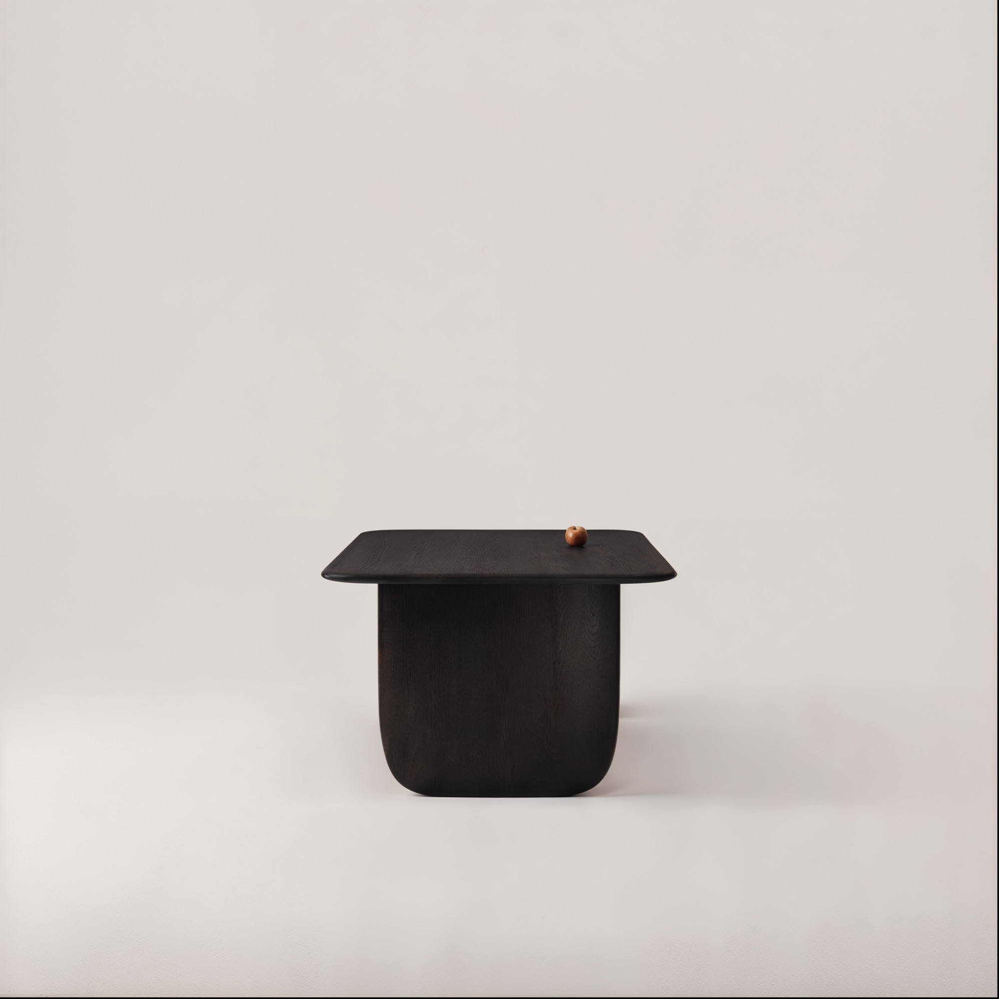 A table that anchors the room. Every edge flows, every corner curves. Solid oak platform where life gathers—meals shared, work done, memories made.